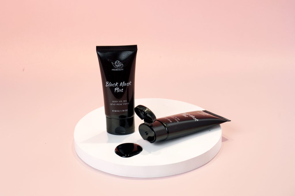 Masker peel-off hitam untuk mengangkat komedo, kotoran, dan sel kulit mati.